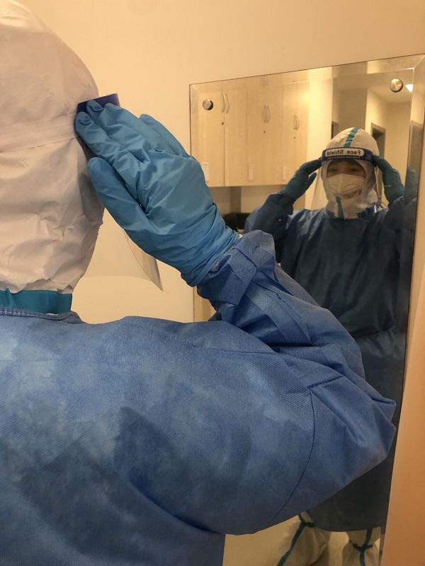 4月18日,护理学院实训员张桐桐接到学校召回的消息,第一时间联系居委,要求火速回校支援工作,并立刻收拾行李,在征得居委同意后当天晚上就返回了学校。