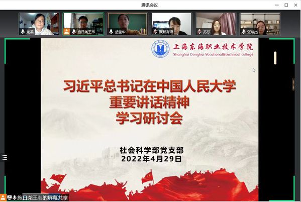 在五四青年节到来之际,习近平总书记来到中国人民大学考察,并深情寄语广大青年。习近平总书记在中国人民大学考察时的重要讲话引发我校社科部热烈反响,4月29日,思政教师们在部门的腾讯例会上集中讨论了各自学习讲话精神的心得体会。