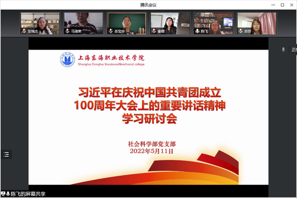 5月10日上午,庆祝中国共产主义青年团成立100周年大会隆重举行,习近平总书记出席大会并发表重要讲话。社科部教师在5月11日的集体备课会上,由《思想道德修养与法治》课程负责人陈飞老师带领大家集中学习谈体会,社科部主任龙燕主持会议。