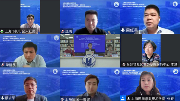 此次活动邀请到闵行人力资源和社会保障局副局长唐治国,上海市就业促进中心副主任沈浩,上海市学生事务中心副主任周红星,闵行区就业促进中心主任陈铁民,吴泾镇社区事务受理服务中心党支部书记、副主任李慧,上海外服(集团)有限公司雇员服务中心总经理蔡永军,上海凌琛供应链管理有限公司创始人、2003级校友曹健莅临指导,校长王刚、党委书记曹蓉蓉、副校长郁萍出席活动现场,学校二级学院主要领导、师生代表共计300余人共同参加线上启动仪式。活动由副校长郁萍主持。