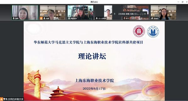 疫情刚过,我校社科部和华东师范大学马克思主义院公民共建的项目在线上云端紧锣密鼓地深入推进,启动“理论讲坛”活动。6月17日,社科部邀请到华师大马克思主义院速继明教授开展题为《在新的历史起点学习十九届六中全会精神》的讲座,社科部主任龙燕主持,全体教师参会。