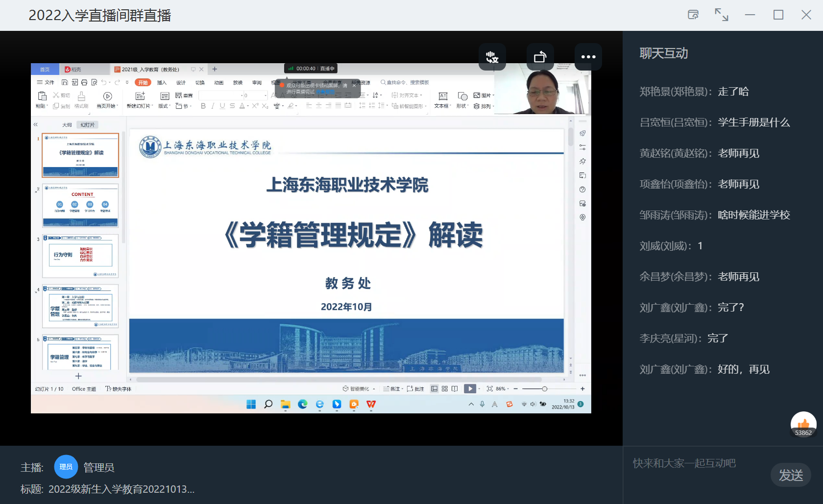 10月14日,为期五天的上海东海职业技术学院2022级新生入学教育圆满结束。今年的新生入学教育全程采用线上方式开展,共计2700余名新生共聚“东海云”。