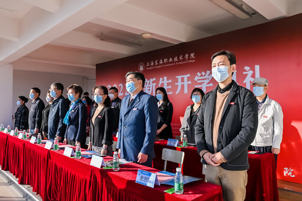 11月7日上午,上海东海职业技术学院2022级新生开学典礼在雄壮的国歌声中拉开帷幕,全体师生注目着鲜艳的五星红旗迎着朝阳冉冉升起,全场庄严肃穆。