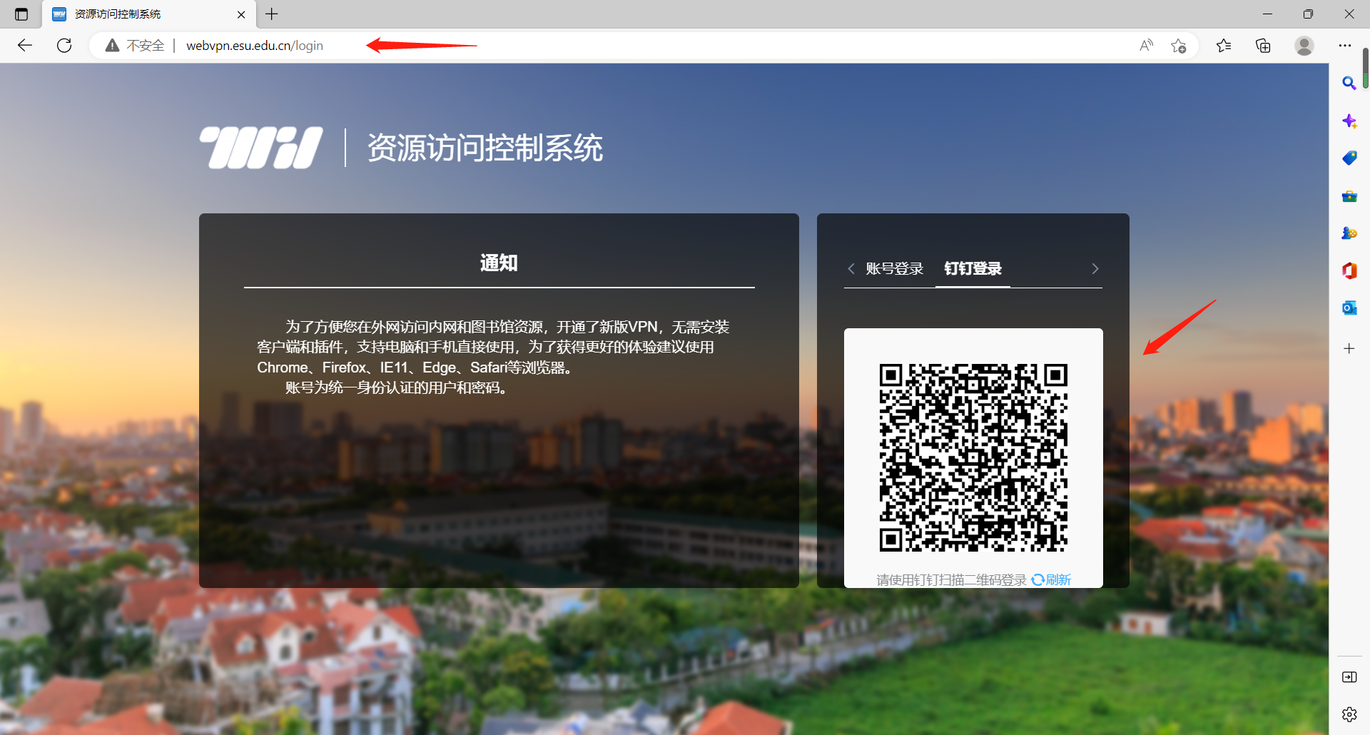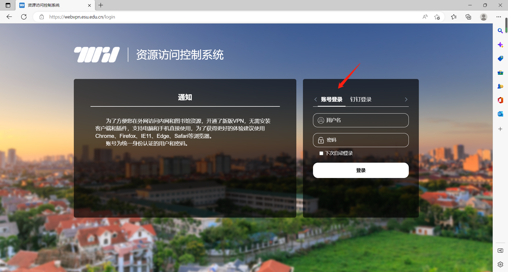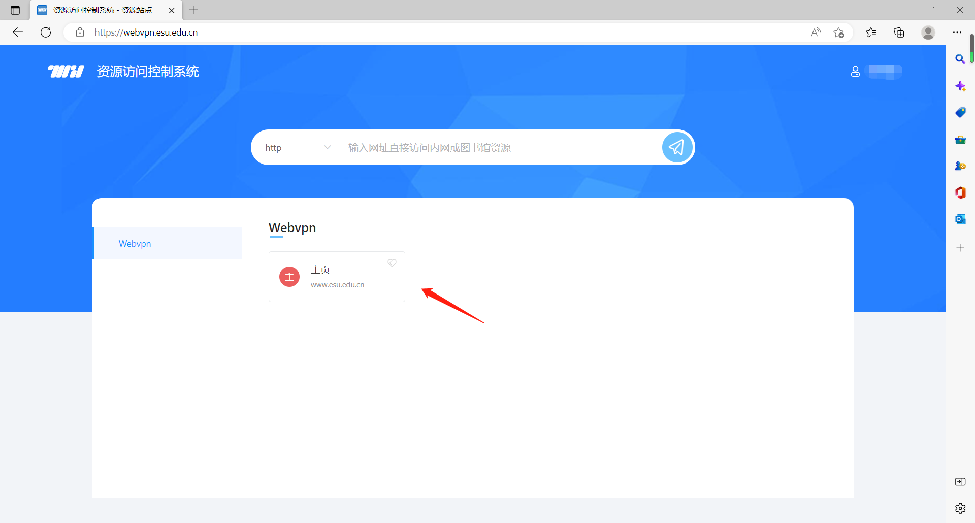1.直接打开网址:http://webvpn.esu.edu.cn/