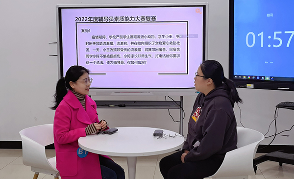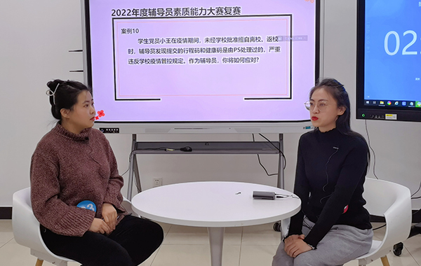 12月5日,学校举行了2022年度辅导员素质能力大赛复赛,复赛由党委副书记王玉、社科部主任龙燕、学工部部长杨瑾、学生工作部副部长王莉娜担任评委,各二级学院直属及辅导员代表现场观摩,腾讯会议室全程直播比赛。