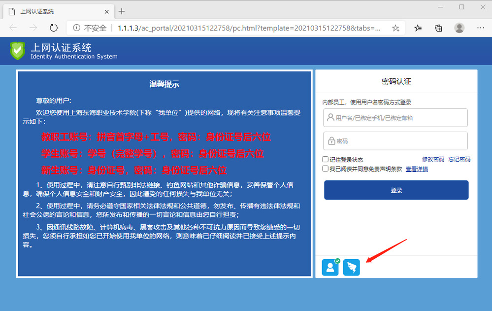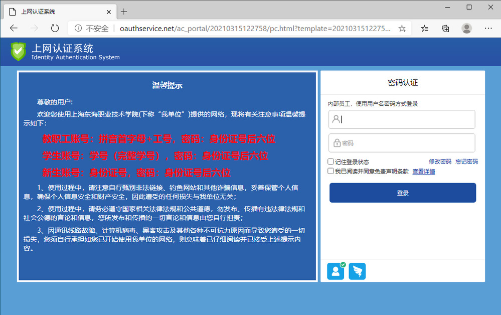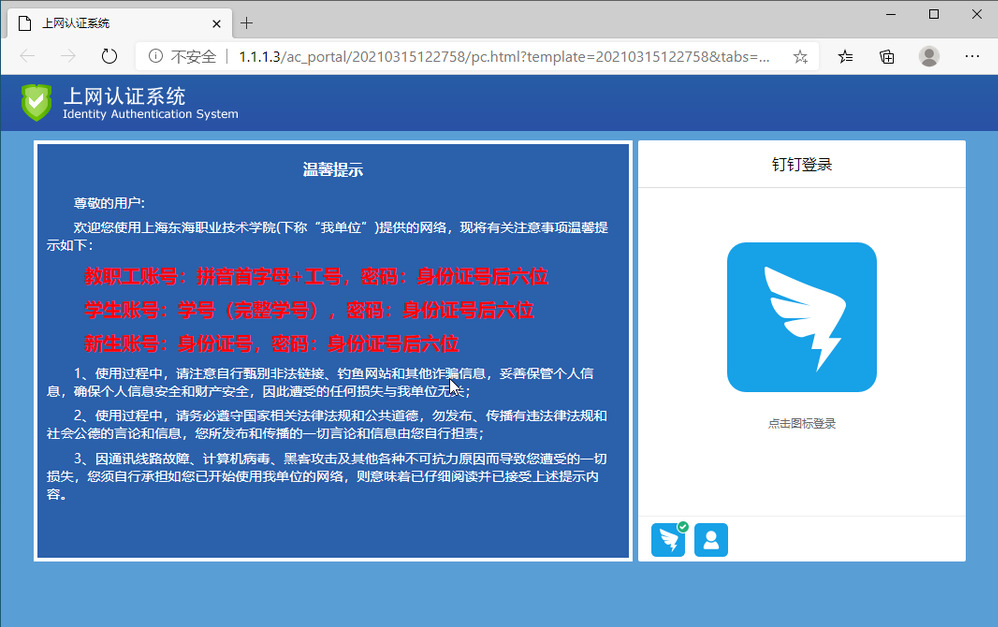 1.连接上东海ESU无线网络后会自动打开登录页面