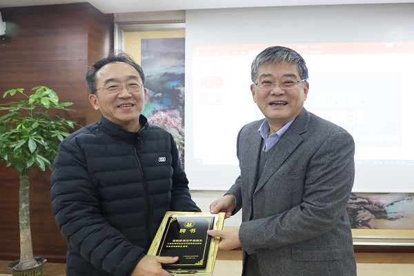 王刚首先向与会专家介绍了东海学院的办学历史、专业特色、主要建设成果和面临的若干困难,感谢各位专家莅临学校指导信息化建设等相关工作。会上,校长王刚、校党委书记曹蓉蓉为宓咏、沈宏兴、沈富可、许华虎、陈世平等5位校外专家颁发了“上海东海职业技术学院信息化建设专家咨询委员会”聘书。