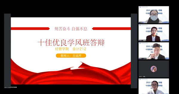 为深入贯彻党的二十大精神,坚持立德树人的根本任务,培育和践行社会主义核心价值观。为展现当代大学生奋发向上的精神风貌,树立先进班级学习典型,展示各班在学风建设中取得的成就,总结班级学习成果,提供互相学习台。12月14日学生工作部开展“十佳优良学风班”答辩会。经学院评选推荐、学校复核,共有12个班级进入答辩环节。