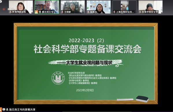 2月9日,社会科学部《职业生涯发展与就业指导》备课组在线上开展新学期集体备课教研活动。此次集体备课旨在改革《求职实务》课程,使课程更加贴近当前学生就业实际,更加有效地辅助学校就业办工作。社会科学部主任龙燕、全体专职教师及校内兼职教师参加此次备课活动。活动由社科部主任助理、课程负责人施晓玮主持,特邀学校就业办主任张春做专题讲座。