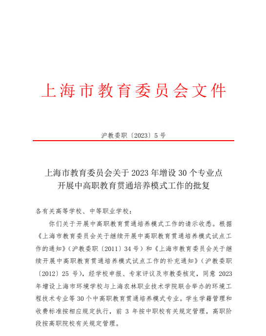 近期,市教委发布了《上海市教育委员会关于2023年增设30个专业点开展中高职教育贯通培养模式工作的批复》(沪教委职〔2023〕5号)的通知,我校民航运输服务和新能源汽车技术两个专业点获批(详见下表)。至此,我校中高贯通培养模式试点增至20个,贯通培养中职校共计9所。中高职贯通培养模式不仅丰富了学校的办学层次、优化了学校的专业布局,更为学生素质和学历提升搭建了成长平台。我校将进一步切实加强中高职贯通培养模式的管理,深入推进与各贯通高校的交流合作,不断深化教育教学改革,全面提升人才培养质量。