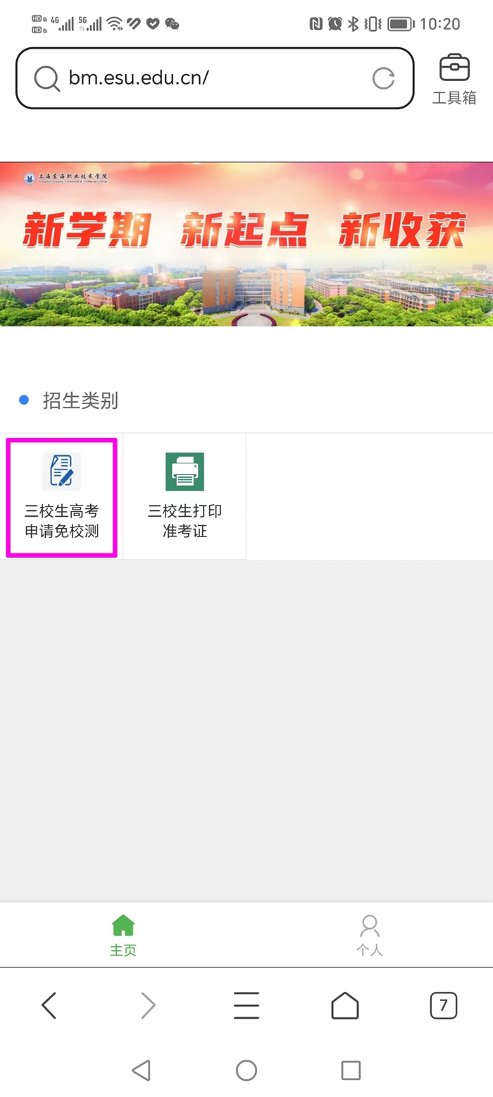 (一)点击“上海市应届三校生高考职业技能测试免考申请材料提交”登录我校应届“三校生”高考职业技能测试免考申请材料提交系统(支持手机登录、电脑登录,建议使用手机端)。