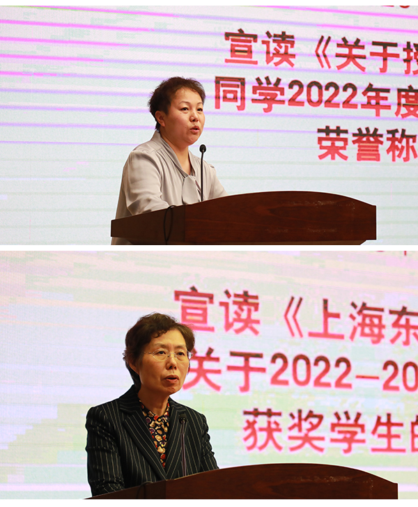此次奖学金颁奖大会共表彰国家奖学金、国家励志奖学金、上海市奖学金、庄飞柳综合奖助学金、校奖学金、“智慧学习之星”等各级各类奖学金和荣誉称号获得者,共计1388人次。党委书记曹蓉蓉、党委副书记王玉分别宣读了相关表彰决定,与会领导为受表彰学生颁发荣誉证书。
