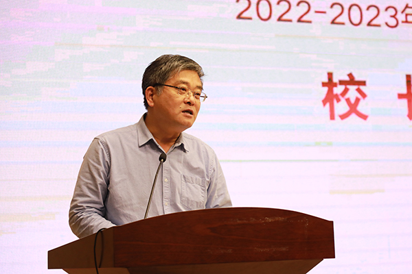 校长王刚作总结讲话。他向全体获奖学生表示祝贺,也充分肯定了在学习上努力付出,虽未获奖但同样优秀的东海学子。王刚指出,大学生活是人生最重要的一个阶段,靠个人的自觉、自律来完善自我学习、工作和生活。他对所有东海学子提出三点希望:希望大家不满足于曾经的辉煌,要对自己的不断成长寄予更高的追求;希望大家记住每一个帮助过自己的人,并将收获的荣耀与他们共享,因为今后的道路是合作共赢的世界,任何成绩的取得,离不开自身努力,更有一路同行的师长和同伴们给予的启迪、指导、鼓励和关爱;希望生逢其时的同学们,在百年未遇之大变局中,大胆把握机遇、迎接挑战,成为无可替代的技术能手、成为千万人瞩目的对象,为了伟大祖国的繁荣富强,成就一生的理想,让东海学院以东海学子为荣!(通讯员 王飞)