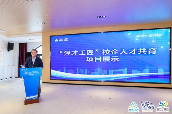 校长王刚就“泾才工匠”校企共育做交流讲话。他表示,学校是吴泾镇环高校科创带的一员,要扮演好技能型人才孵化器的角色,主动融入区域发展的洪流,努力为区域经济的发展提供源源不断的具有企业精神的高技能复合型人力资源。他指出,近年来对接闵行和吴泾镇需求,合作取得了丰硕的成果。从南部科创中心零号湾、大树下创意服务园区、莲谷新兴科技产业园区等,优化拓展渠道,共筑人才培养阵地。通过联合设立闵行特色就业服务品牌“创聚乐业东海服务站”,共建东海-莲谷校企协同创新创业实践基地,为学校提供集就业、创业、培训等多项功能于一体的服务载体。