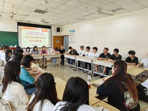 根据开展学习贯彻习近平新时代中国特色社会主义思想主题教育的实施计划,为了深入调查研究,联系实际对标对表,机关第五党支部于5月29日中午在北305教室召开了学生座谈会,来自各个班级的32个学生代表以及支部全体党员参加了座谈会,听取学生对支部和党员以及学院在学生管理、教学管理等各方面的意见和建议。为了有效听到真声音、摸清真情况、解决真问题,座谈会前,支部把调查研究的议题发给学生代表,让他们深入思考,做好发言准备。