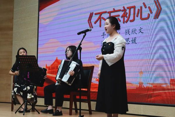 为深入学习贯彻习近平新时代中国特色社会主义思想主题教育,在美育中提升爱国情怀,东海学院传媒学院6月7日晚在匠兴苑报告厅开展了一堂以“风琴忆经典,培根筑党魂”为主题的音乐党课,本次党课特邀来自上海师范大学音乐学院的手风琴教师时璇及学生青年演奏家们为200余名的传媒学子进行奏唱。