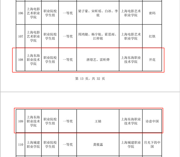 相较上一届,无论从获奖种类上还是质量上,我校师生又有了新突破、新飞跃。我校所有指导教师均获“优秀指导奖”;3件一等奖作品代表上海参加全国赛;教育学院王婧同学获2个一等奖,为唯一获“讲解大赛”(大学生组)一等奖的高职院校选手;教育学院李璇同学的书法(毛笔)作品《念奴娇·赤壁怀古》为我校第一件在该赛项中获奖的书法类作品。