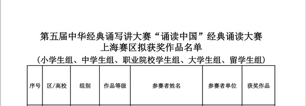 第五届中华经典诵写讲大赛上海赛区公示一等奖截选