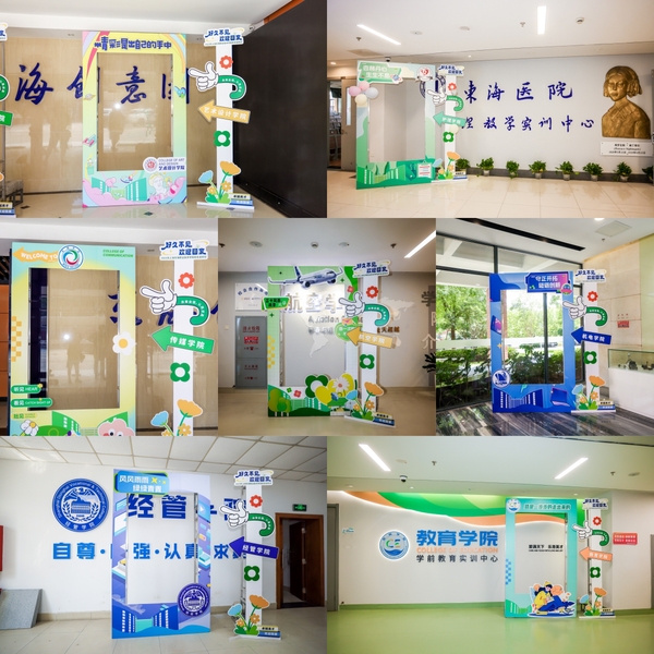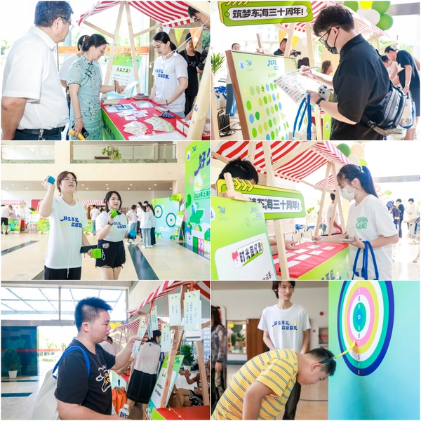 一大早,东海校园里就一派喜气洋洋,大眼睛广场“好久不见,欢迎回家”的青绿色喷绘展板格外引人注目。走进东海源一楼大厅,校友们完成签到后,即可领取母校精心设计的服装及伴手礼。校友们通过参与“时光回忆录”问答忆及母校生活的点滴,通过“说成语”为母校30周年校庆送上祝福。活动现场还布置有校友嘉年华之亲子环节,大人和孩子可以一起参与丢沙包、弓箭锦标赛、猜谜等游戏,热闹非凡。
