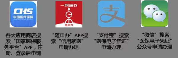 医保电子凭证应用第三方渠道应用程序中申领和激活本人医保电子凭证,常用申领渠道如下: