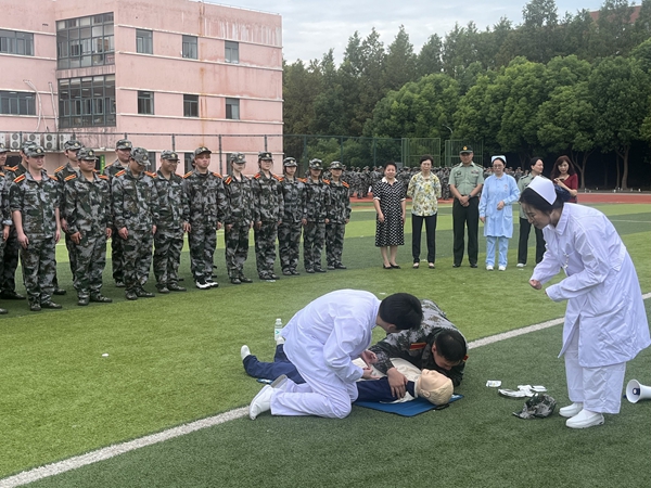 9月5日,战场急救训练进行得如火如荼,各营学生身姿挺拔、口号响亮。校领导走进2022级新生军训场看望并慰问参训教官和学生。6日是模拟射击训练,同学们聚精会神地练习据枪、瞄准、击发,许多同学打出优秀成绩。军训现场,各连学生练站军姿,眼神目光如炬,统一听从教官安排。按时集合,积极训练。训练场地内,不时传来阵阵激扬饱满的口号声,整齐划一,铿锵有力。