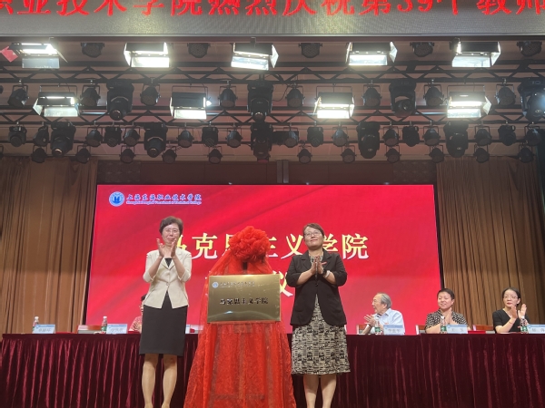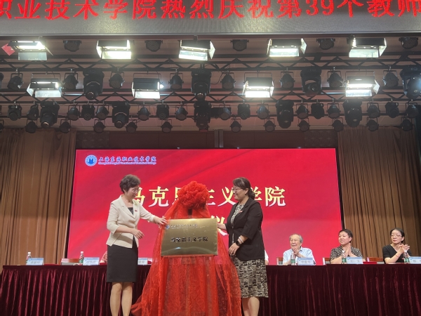 在9月7日召开的上海东海职业技术学院第39个教师节庆祝大会上,学校举行了马克思主义学院成立的揭牌仪式。校长王刚宣读了《上海东海职业技术学院关于成立马克思主义学院的决定》,党委书记曹蓉蓉和马克思主义学院院长龙燕为马克思主义学院揭牌。
