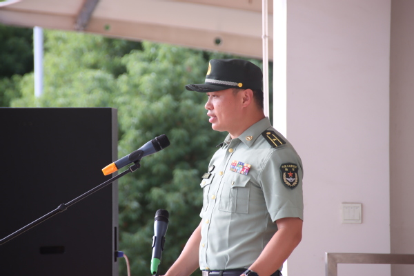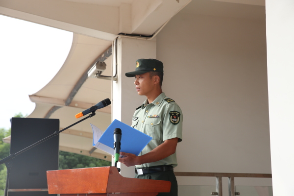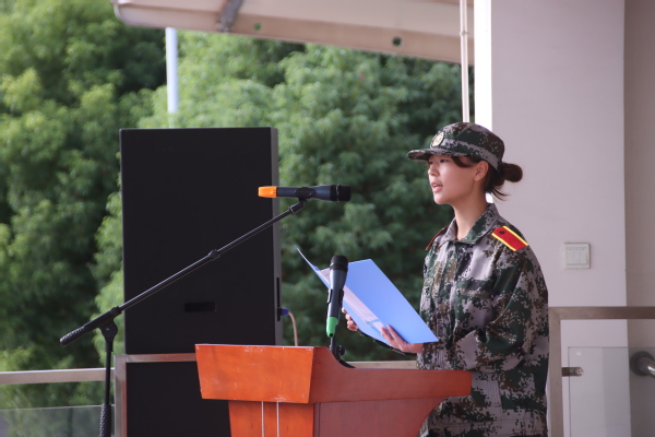 来自经管学院的新生周毓蕙代表新生发言,她表示军训中一定严格要求自己、克服困难、团结一致,圆满完成军训任务。教官代表徐西亚代表全体教官发了言,他说:要充分做好施训准备,周密备课;科学施训,严格管理,确保训练扎实有效;身先士卒,模范表率,时刻保持良好军人姿态,严格要求自己,做到言传身教,以身作则,展示好形象。