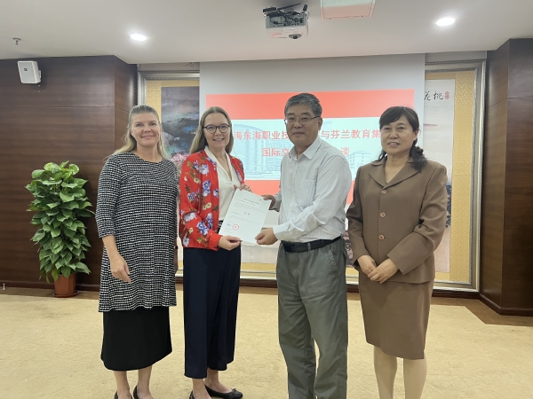 会上,双方介绍各自学校概况,并阐明合作意向。王刚提出双方可以在教师培训、教师学历提升、学生短期访学和学历提升等方面开展合作交流。芬兰教育集群代表表示,芬兰教育集群拥有较好的职业培训资源,他们将尽全力做好相关培训工作。同时,他们还带来了对我校建校30周年的贺信,祝贺东海三十而立、向新而生。