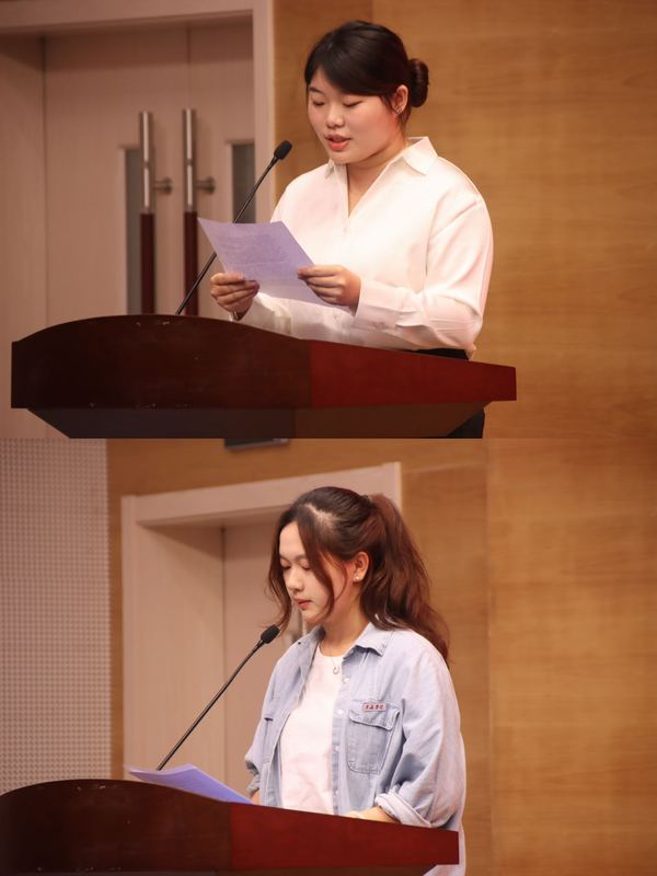 23级学生代表曹睿茜代表新生发言,表示将以东海为起点、以师大为征程,不断努力,继续前行。
