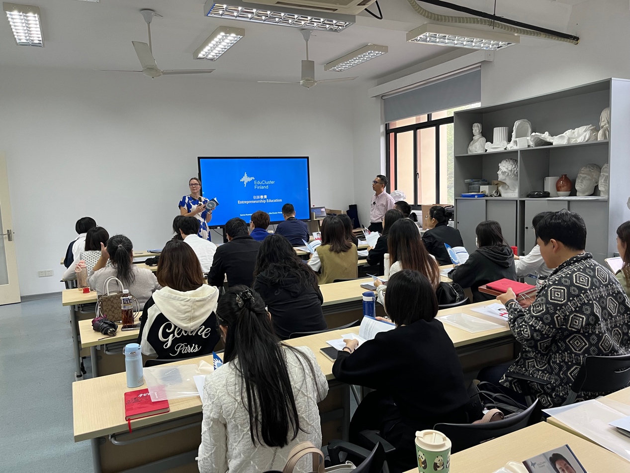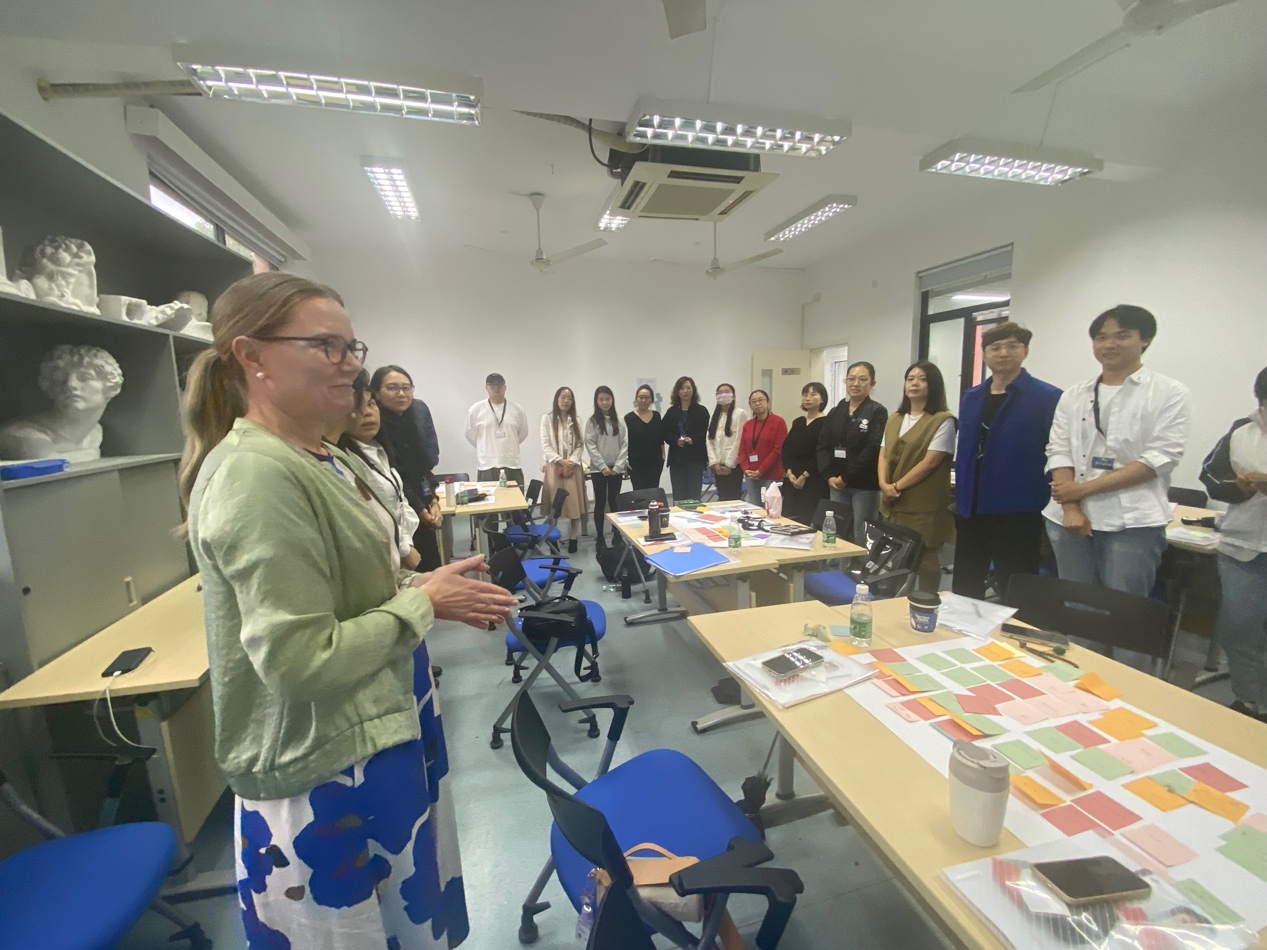 创新课程教师工作坊凝聚了芬兰教育集群在职业教育中的成功经验,内容涵盖了芬兰的教育教学法和领先的创新课程,并和专业群中高职、中职的设计教学实践相结合。工作坊活动内容丰富多彩,涵盖了教师间的协作;以学生为中心的教学方法;校企实习合作;基于现象的教与学、创新创业学习、指导和导航;来自芬兰的案例、教学方法和工具、学生创新培训课程的结构等各个方面,并组织了参加工作坊的教师们以小组为单位,学以致用,完成创新案例并进行集中讲评。