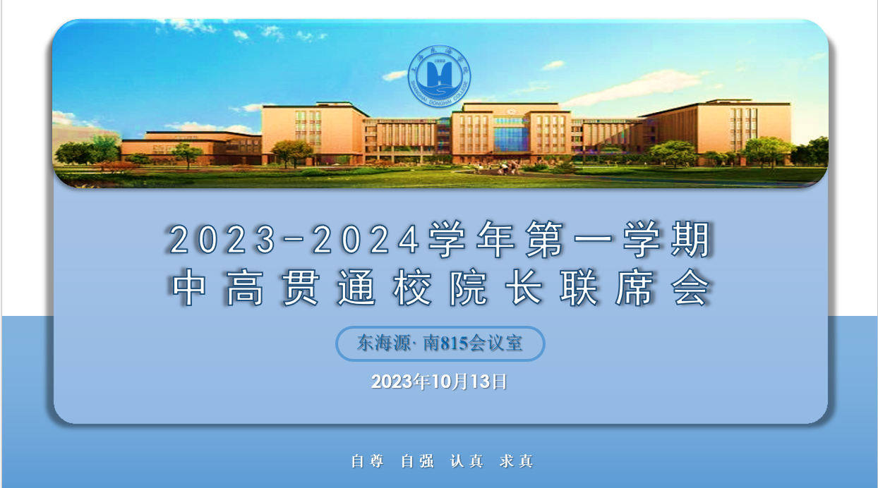 10月13日上午,上海东海职业技术学院(以下简称“东海学院”)2023-2024学年第一学期中高职贯通培养校院长联席会议在东海源南815会议室召开,东海学院相关校领导、各贯通中职学校校长或代表和贯通专业所在学院负责人参加会议,会议由副校长卓丽环主持。
