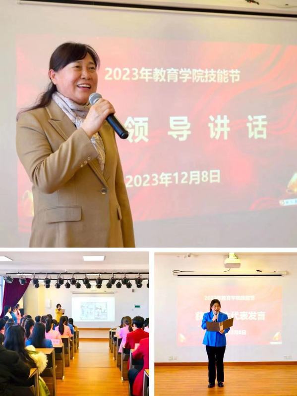 副校长卓丽环在讲话中祝贺教育学院技能节圆满结束,祝贺获奖学生通过努力和拼搏获得优秀成绩。卓丽环表示,以技能节检验日常教学、锻炼学生和提升教师能力的目标在教育学院获得了很好检验,教育学院技能节帮助学生找到自身发展的空间,让他们成为自信、拼搏、有提升的全面发展的人才。她希望同学们更好地掌握适应未来职业发展的能力,更快成长,也希望教育学院人才培养工作越做越好,在未来大赛上金榜题名。