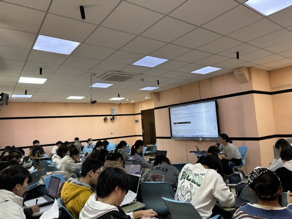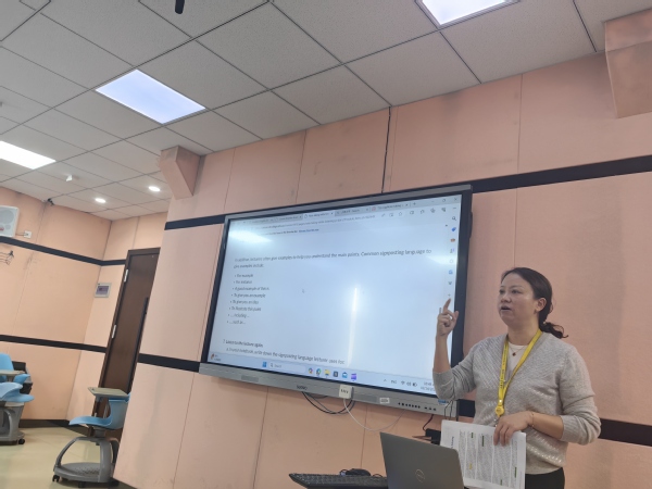 为了对该校的英语教学情况有更直观的了解,英语教研室的老师们走进上大悉尼工商学院英语系主任旷群老师的课堂,开展了听课活动。课堂气氛活跃、学生参与度很高。她善于使用各种方法抓住学生的注意力,组织课堂活动、调动学生的积极性,将难度较高的原版教学材料让学生们在较短的时间内消化、掌握。