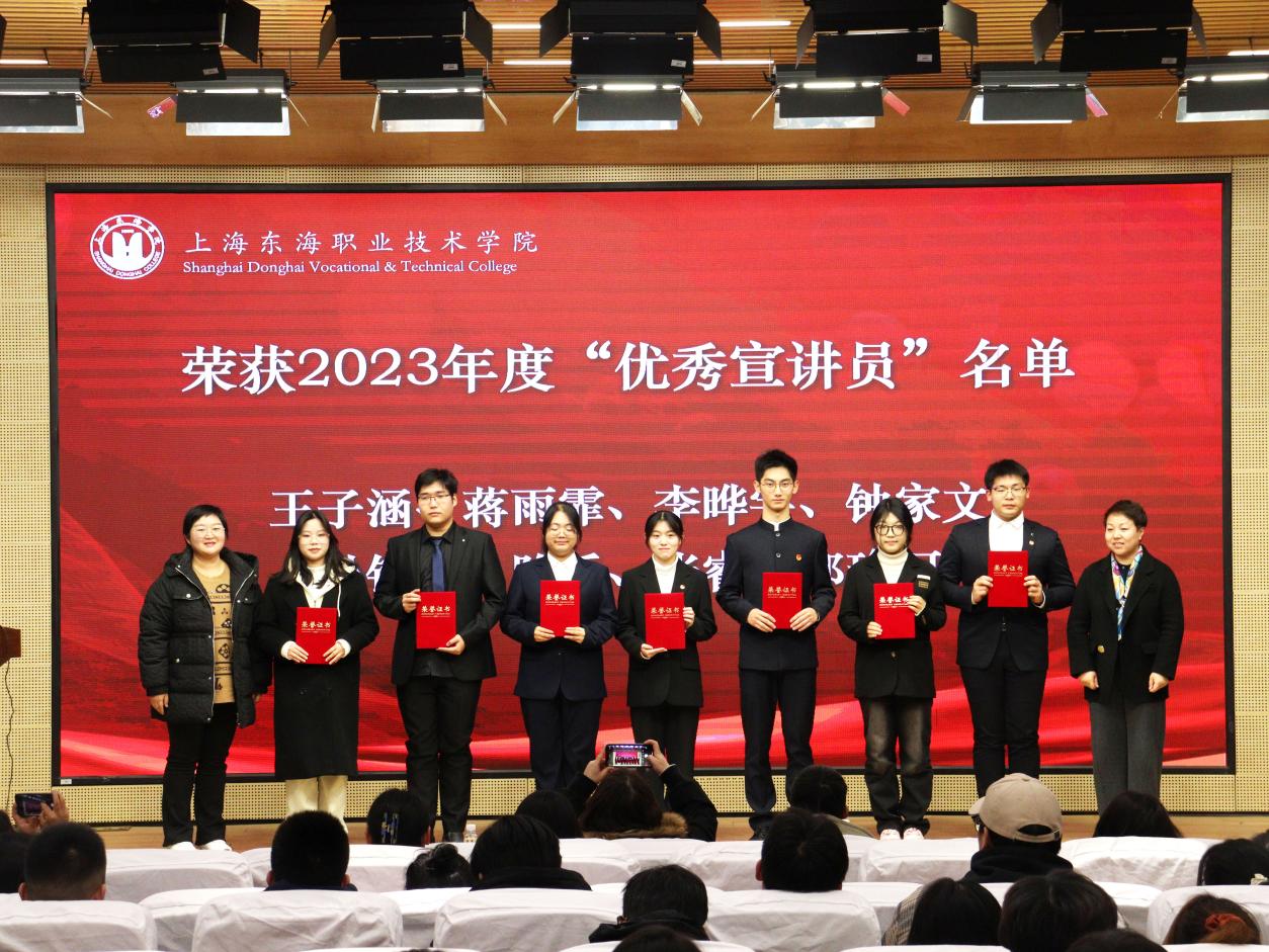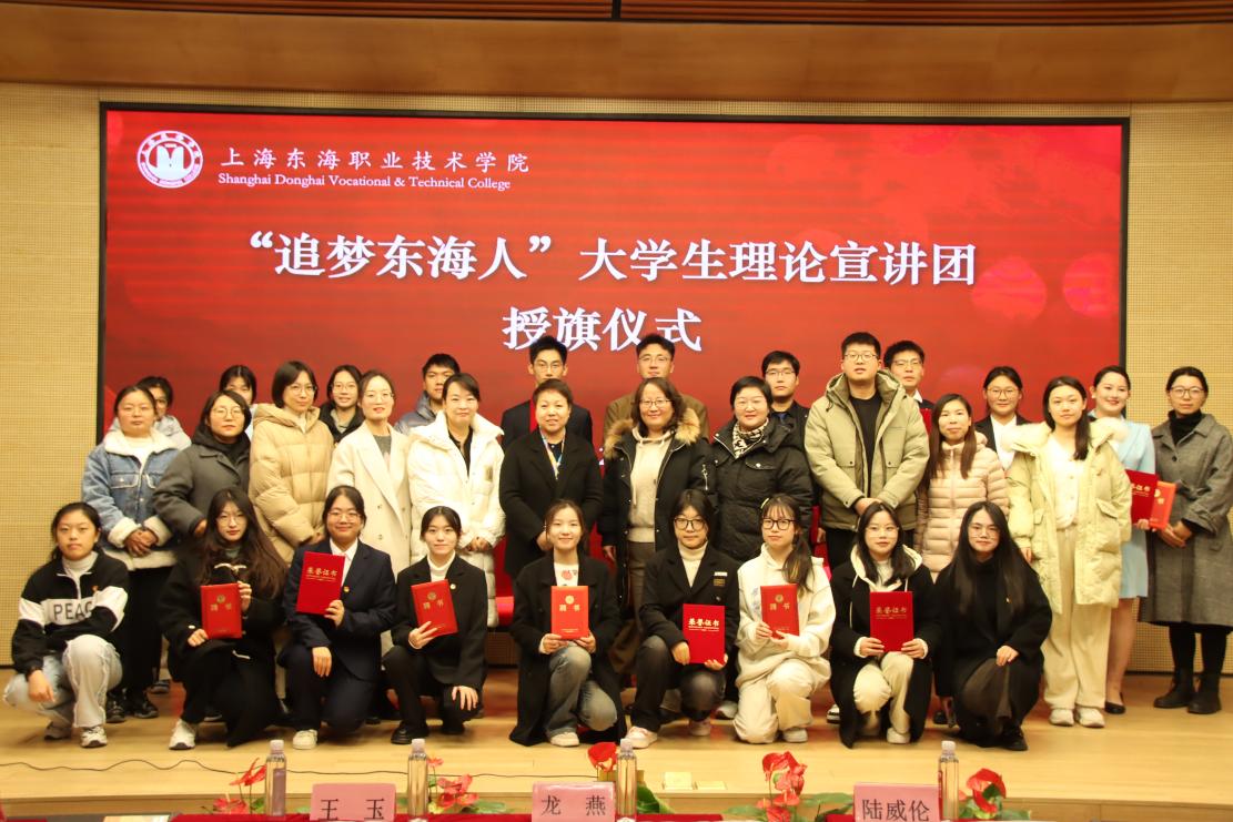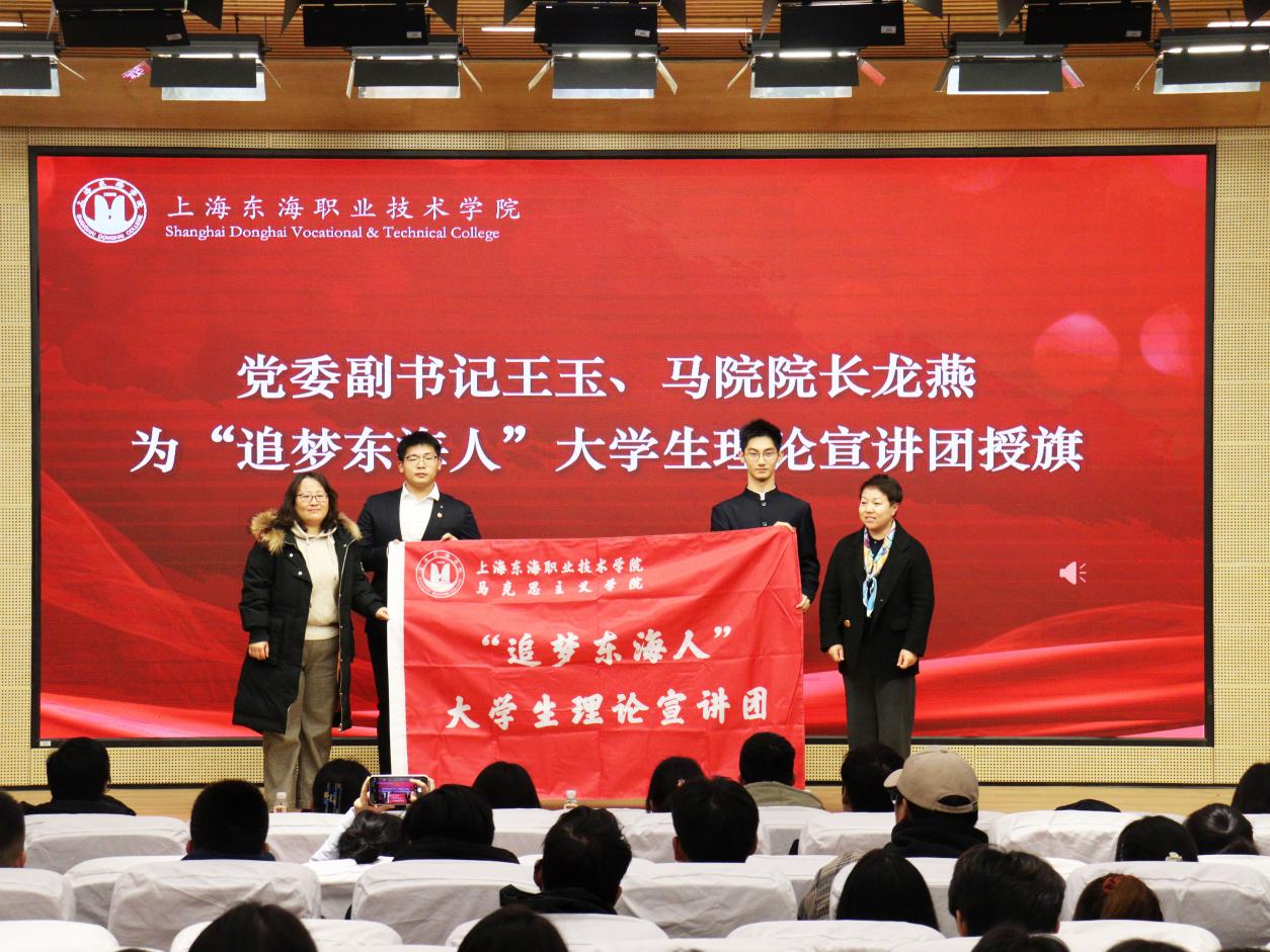 12月25日下午,上海东海职业技术学院“追梦东海人”大学生理论宣讲团授旗仪式在匠兴苑报告厅举行。