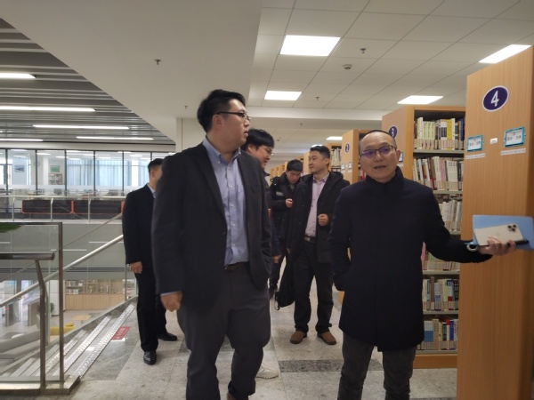 随后,张扬一行在图文信息中心主任、图书馆馆长、国际交流(港澳台事务)办公室主任孟昭上陪同下,先后调研考察了东海学院档案室、信息中心、图书馆密集库及阅览区域,并在图书馆党建阅览室与图文中心副主任(信息中心主任)康春、图文中心副主任(档案室主任)王丹、图文中心党支部书记潘健文等围绕信息化建设、数据安全、图书馆功能拓展、数字化档案管理、国际化和中外合作办学等工作进行了座谈。(通讯员 孟昭上)