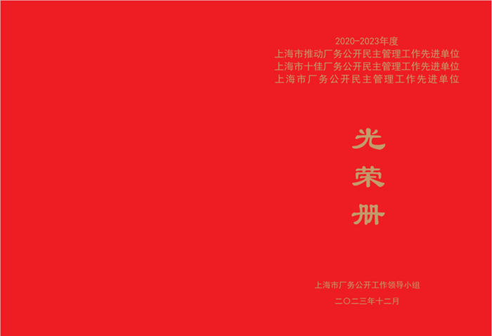 近日,上海市厂务公开工作领导小组授予我校“2020-2023年度上海市厂务公开民主管理工作先进单位”荣誉称号,这是对我校校务公开民主管理工作的一次重要肯定。