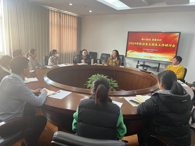 1月3日下午,学校2024年依法自主招生宣传工作会议在南814会议室召开。会议对2024年依法自主招生各项工作的开展进行安排布署。分管校领导、各二级学院行政办主任和招生办公室全体参加会议。