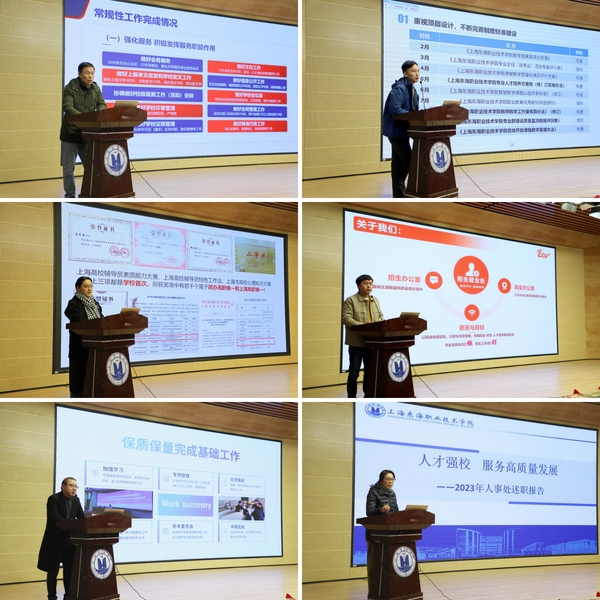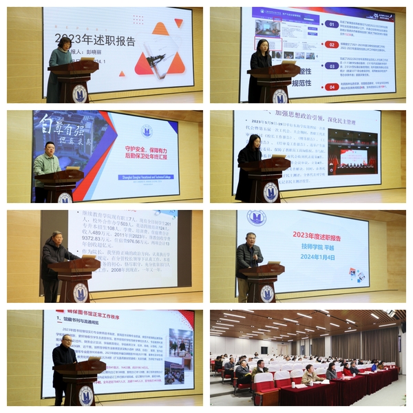会上,各教学单位、党政管理部门、直属部门主要负责人结合本学院(部)、本部门承担的主要职能,从常规性、发展性、特色创新性工作完成情况,存在的主要问题和下一步工作展望等方面进行述职汇报。与会人员认真听取述职报告,并进行现场测评。