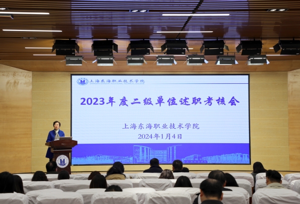 为全面总结、考评学校2023年度各二级单位工作完成情况,有序推进学校“十四五”规划实施,1月4日,在匠兴苑学术报告厅召开2023年度二级单位述职考核会。党委书记曹蓉蓉主持会议,校党政领导班子成员、全体中层干部、教师代表参加。