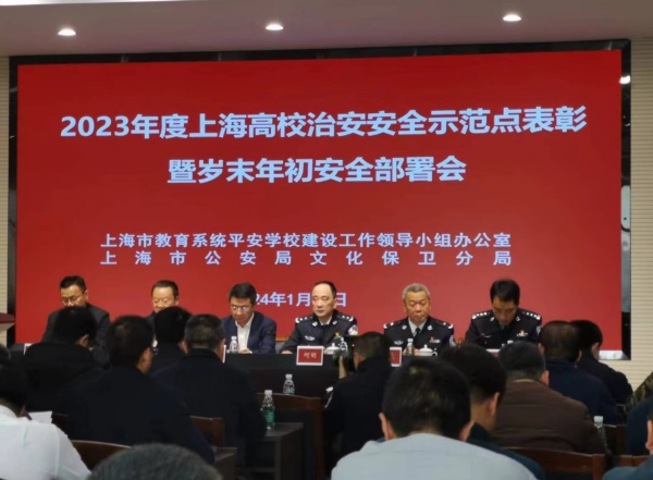1月17日下午,上海市教委会同上海市文保分局召开的“2023年度上海高校治安安全示范点表彰会暨岁末年初安全部署会”在高恒大厦举行。本次会议表彰在治安安全工作中表现突出的高校,并就岁末年初的安全工作进行部署。会议特别强调了校园安全对于师生的重要性,并对高校提出了更高的安全要求。