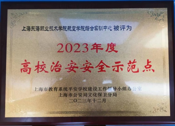 在本次会议上,上海东海职业技术学院航空学院综合实训中心凭借其出色的安全管理工作,从众多高校中脱颖而出,荣获“2023年度高校治安安全示范点”的称号。这是对学校在治安安全工作上的卓越表现和显著成效的肯定和认可。