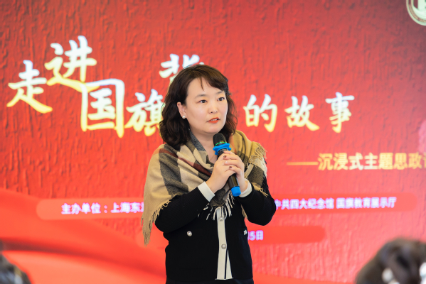 3月15日下午,上海东海职业技术学院沉浸式主体思政课《走进国旗背后的故事》在中共四大纪念馆二楼初心讲堂举行,思政课堂与社会大课堂紧密结合,更直观、更生动、更接地气,进一步激发了学生的课堂参与热情。通过探索“国旗背后的故事”的学习,同学们重温历史,接受思想的启迪、精神的洗礼。