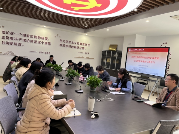 曹蓉蓉结合相关实际案例强调了思政教育的重要性,指出马院是第一学院,思政课是关键课程,并对马院教师在理想信念、政治立场和教育教学上提出了更高的要求。她指出,思政教师要加强学习,了解国际国内形势,提高政治素养和政治站位。马院的集体备课要备内容也要备学生备实践。她再次强调了纪律要求,重申师德师风一票否决制。希望全体教师在师德师风上要发挥马院第一学院的引领作用,走在全校师德师风建设的最前沿。(通讯员 陈飞)