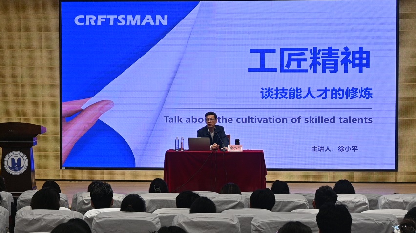 为深入学习宣传贯彻党的二十大精神,大力弘扬劳模精神、劳动精神、工匠精神。3月25日下午“与劳模工匠面对面,点燃技能报国梦”系列讲座的首场讲座在匠兴苑报告厅拉开序幕。全国劳模、上海工匠、上海市技师协会会长、上海东海新型技师学院副院长徐小平以“工匠精神:谈技能人才的修炼”为主题,带来了一场别开生面、独到新颖的讲座。马克思主义学院院长龙燕主持讲座。