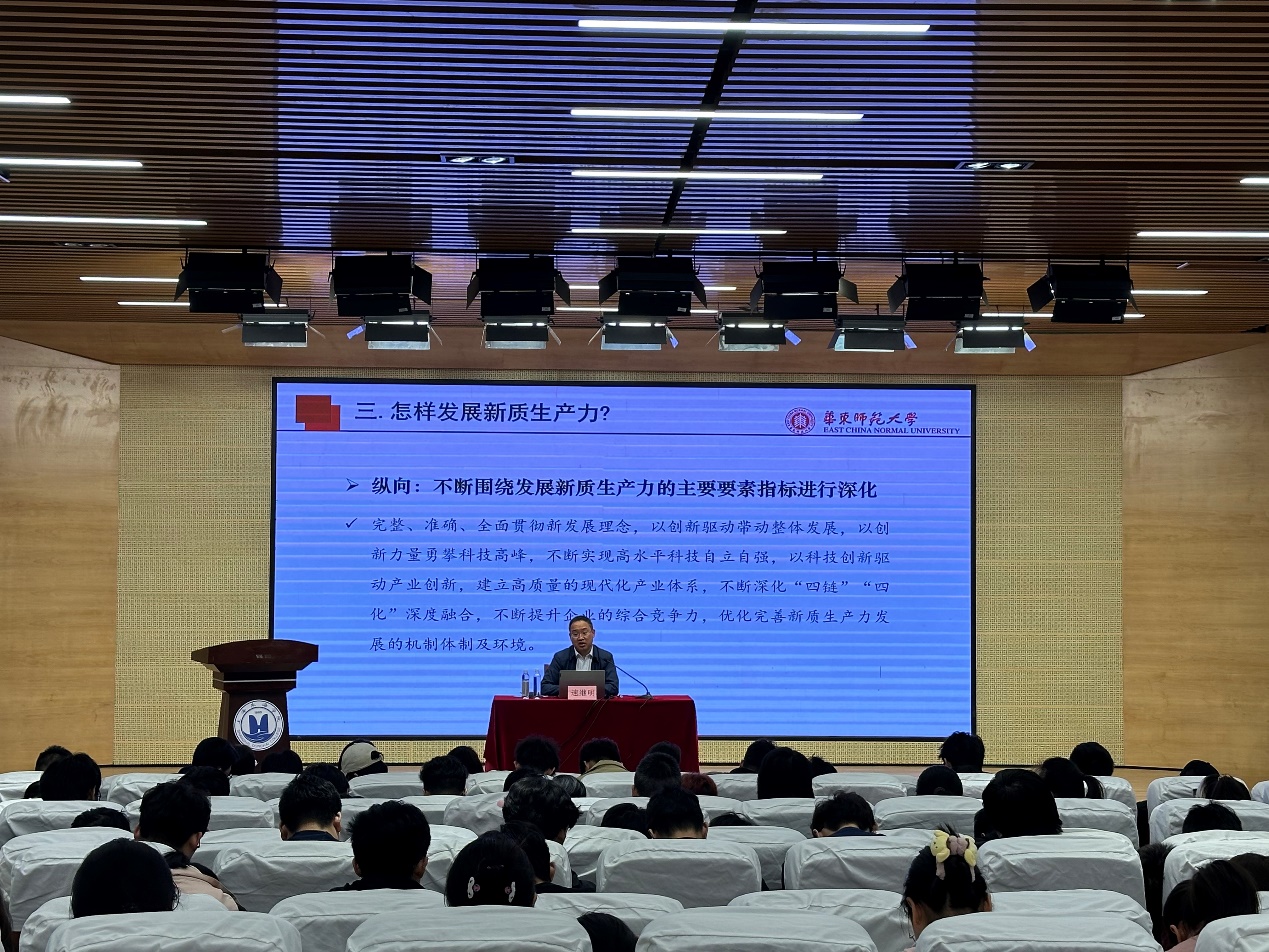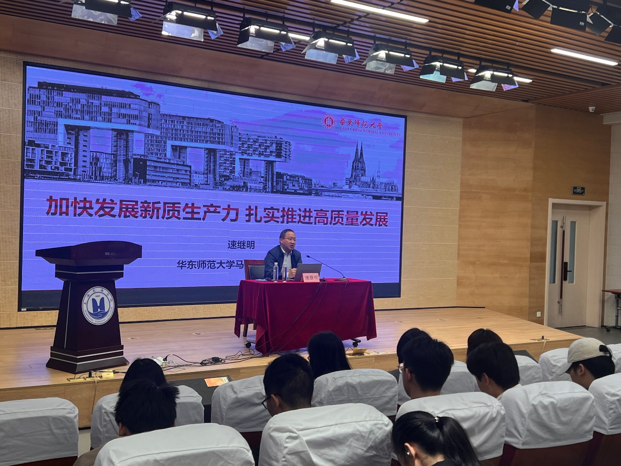 华东师范大学马克思主义学院副院长速继明教授应邀作“加快发展新质生产力 扎实推进高质量发展”的主题报告。