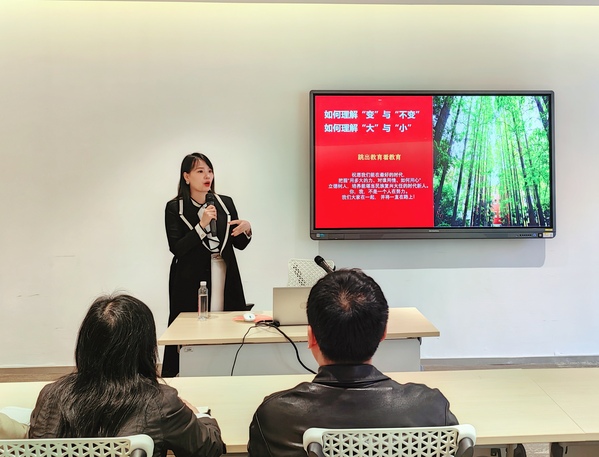 魏冰从理想与现实的必然差异、初心与热心的再次碰撞、职业与事业的相辅相成等几个方面分享了自身的心路历程。她讲述了自己初入队伍时的繁忙与收获,通过学习破解职业倦怠的方式方法以及如何跳出工作本身,找到精准着力的价值与归属。同时,魏冰老师分享的自身案例,将学生成长规律与融媒体结合,成为网络育人的行家。将思政教育与心理健康相融,成为学生最信任的“心灵守护者”,将传播学理论与主题班会相融,成为主题班会“专家”。魏冰勉励大家在最好的时代提高立德树人能力,坚持用习近平新时代中国特色社会主义思想铸魂育人。
