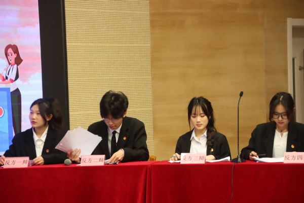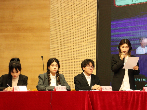 下半场是传媒学院和信息工程学院间的冠亚之争。他们围绕“AI人工智能发展利大于弊还是弊大于利”这一辩题,展开了一场激烈的辩论。选手们用丰富的背景知识和精妙的辩论策略将当今大学生该如何看待人工智能技术的发展表达的淋漓尽致,台上妙语连珠,台下沉浸其中。