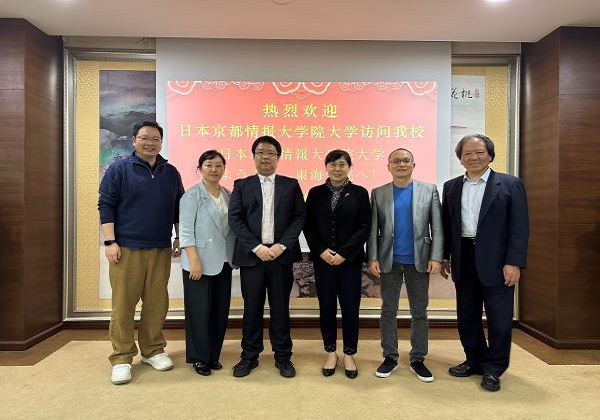 2024年4月12日,日本京都情报大学院大学上海事务所负责人任兵、鸭川校京都日本语研修中心主任岸田憲也一行访问我校,受到副校长卓丽环的热情接待。