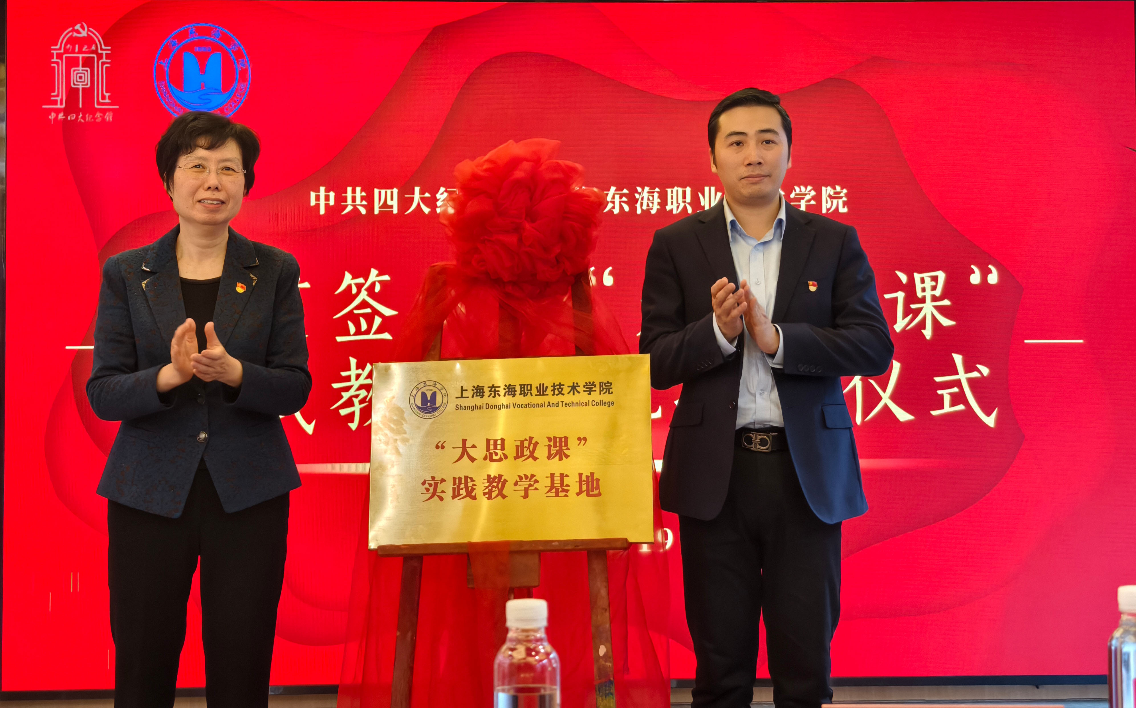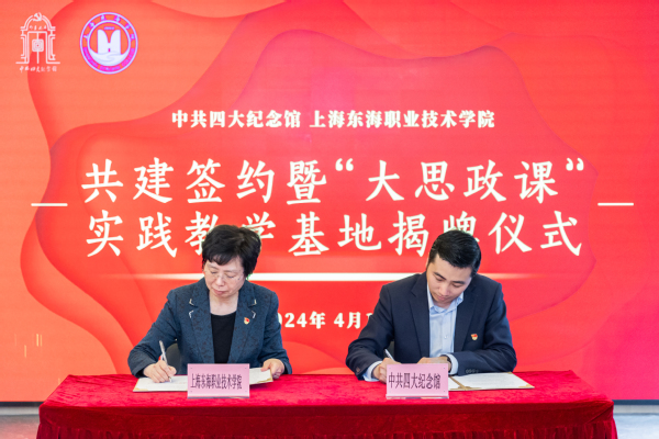 现场,上海东海职业技术学院党委书记曹蓉蓉、中共四大纪念馆副馆长吴毅斌共同为上海东海职业技术学院“大思政课”实践教学基地揭牌。