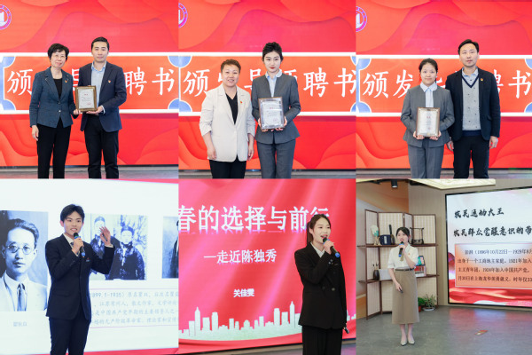 仪式上,东海学院为校外指导专家、“大思政课”实践教学导师颁发聘书,聘请吴毅斌为“大思政课”校外指导专家、倪吉琳为中共四大纪念馆国旗教育展示厅“大思政课”实践教学导师、马家欣为左联会址纪念馆、李白烈士故居“大思政课”实践教学导师。